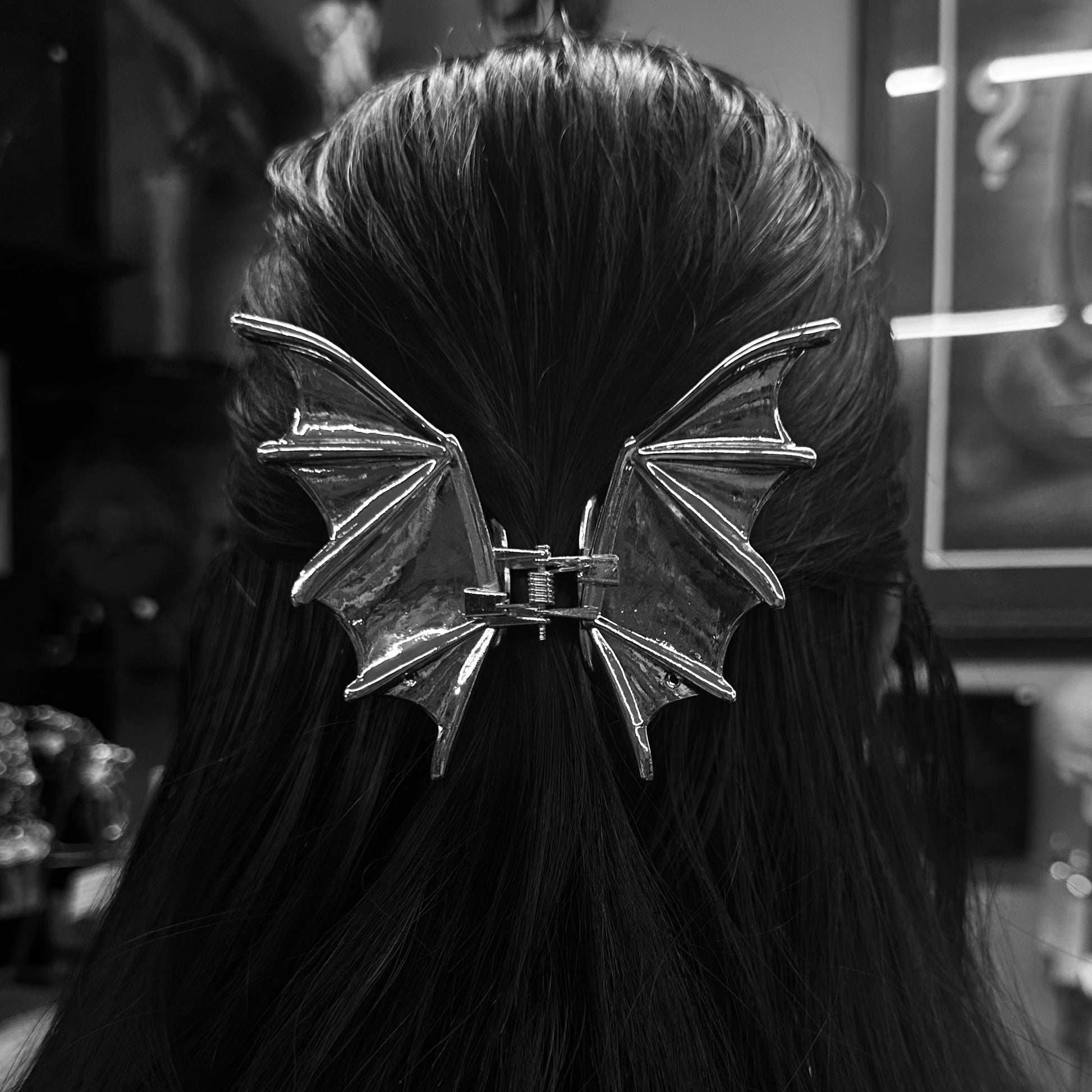 Bat wing clip is a stunning and captivating accessory that seamlessly blends goth with the delicate beauty of nature